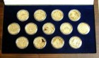 In the mid-1960's, the Franklin Mint popularized a new class of collectible - coins, art medals, and ingots minted in precious metals (silver, gold, and platinum) and marketed for both their artistic content and intrinsic worth. Most were sold by direct subscription with one or two new medals issued per month over a period of months or years. Typically, the Franklin Mint provided attractive packaging for the complete sets, ranging from picture frame type mounting to bookshelf albums to wooden display cases to elaborate multi-drawer chests for some of the larger sets. Many of the sets were minted in several sizes and in several metals, including most commonly in bronze, sterling silver, and gold-plated sterling silver, and rarely in pure gold or platinum. During its heyday of the 1970's, the Franklin Mint had many distinguished artists and sculptors creating the designs for the art medals, including notably Gilroy Roberts, former chief designer for the United States Mint. Superbly detailed designs coupled with Proof quality minting produced some works of art that could truly be considered museum or heirloom quality. Other private mints such as the Danbury Mint, Hamilton Mint, and Lincoln Mint also produced similar sets, but the Franklin Mint was by far the largest producer and created some of the most artistic and best quality items.