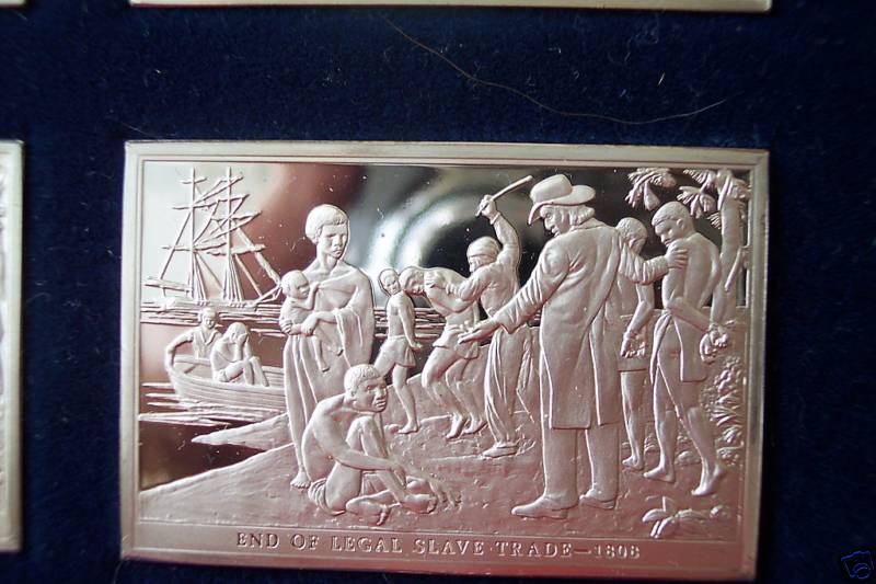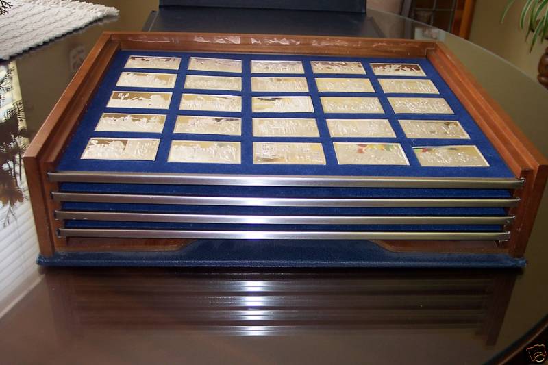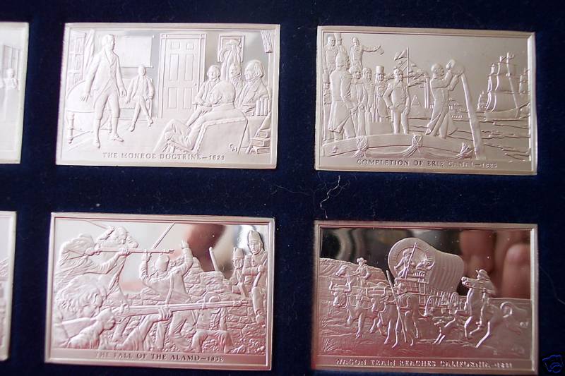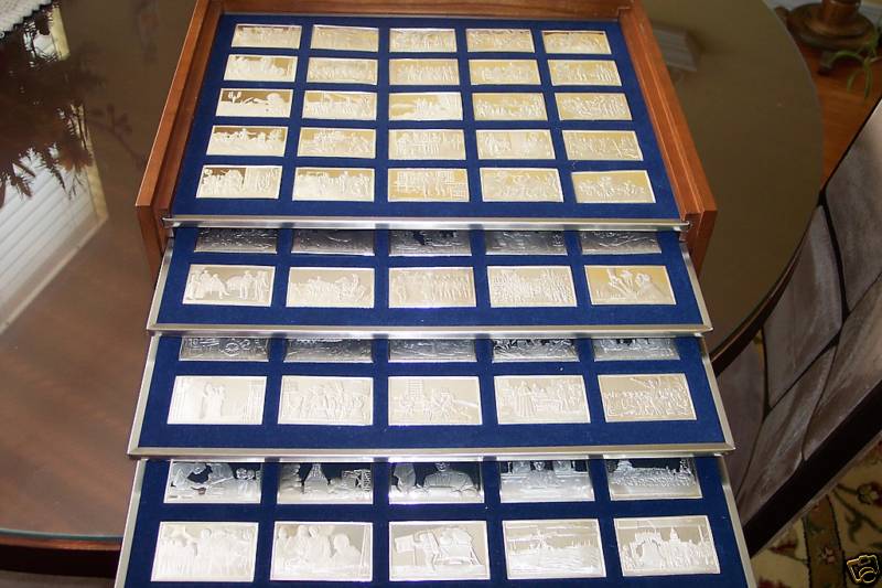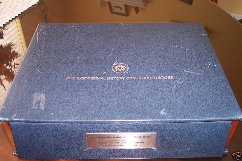 This set is easy to confuse with the Bicentennial Ingots because the ingots are of similar shape and size and subject matter. To make things worse, this set is often called the Bicentennial Ingots also. The other Bicentennial ingot set has 70 ingots mounted in cachets as postal first day covers with a stamp - this set is 100 ingots in a display case.