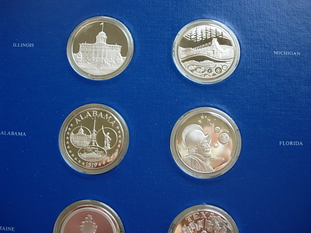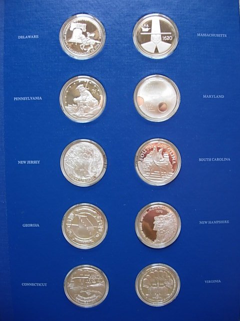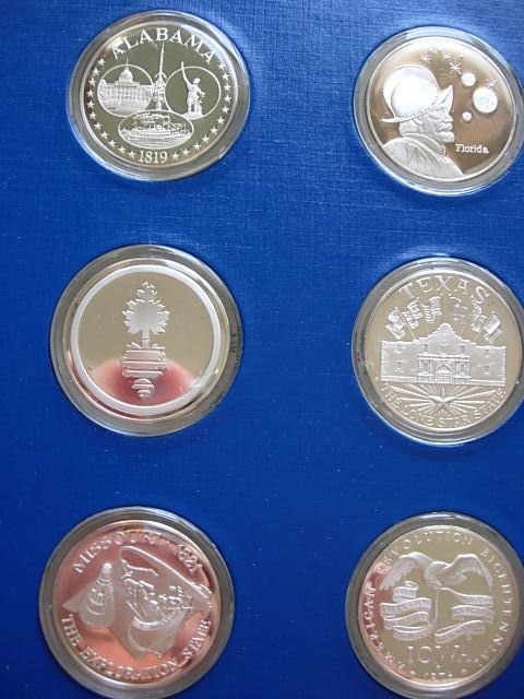 One of the most popular - and higher mintage - Franklin Mint sets. The design for each medal (on both sides) was chosen by a committee in each state to reflect the state's heritage, so each individual medal could be considered an award winning design. Some of the state quarter designs are very similar to these medals.