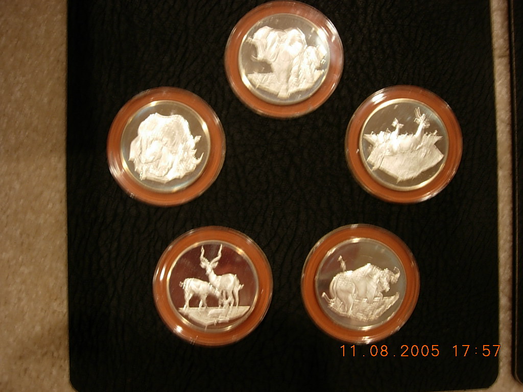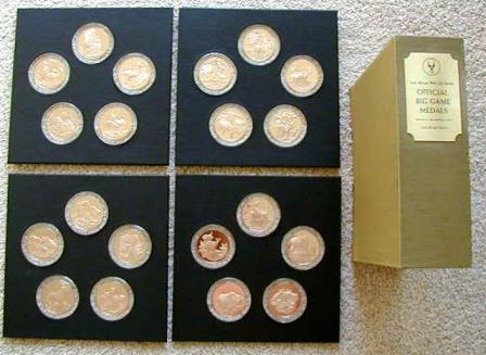 Large and attractive medals; packaging on 4 separate frames in a pullout album is a little awkward. Capsules fit very tightly in frames and many seem to be cracked as a result. The bottom picture below is of the bronze set, which came in a cloth covered case; the silver edition came in a wooden case.