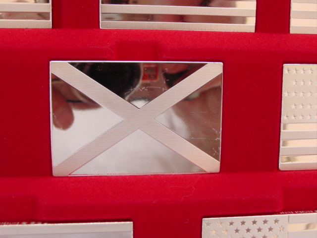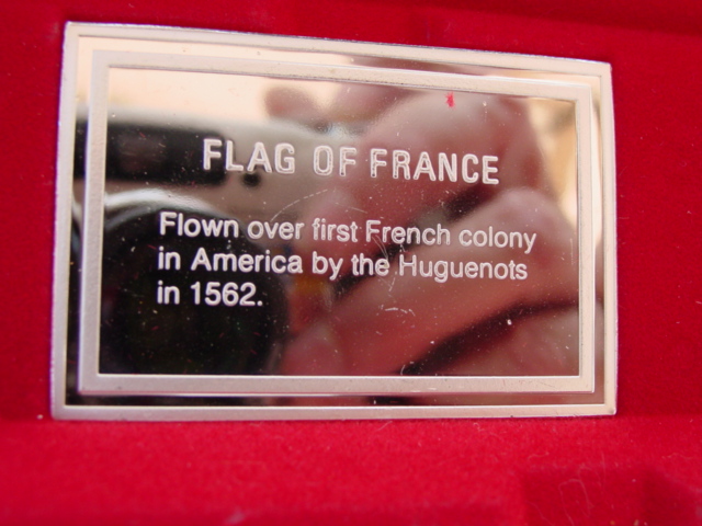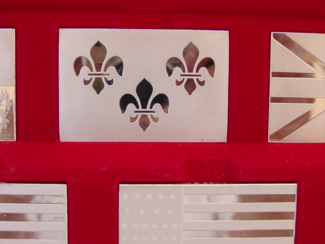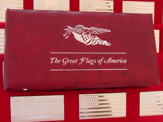 One of several flag sets, this one shows all of the "official and sovereign" flags that have ever flown over U.S. soil. The flags are different sizes to correspond to the original proportions. The gold-plated set is the only Franklin Mint set I'm aware of that was made in .500 silver - that set is quite rare.