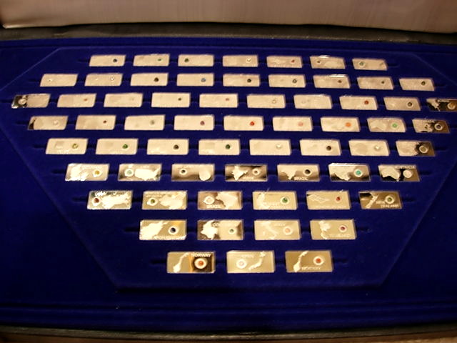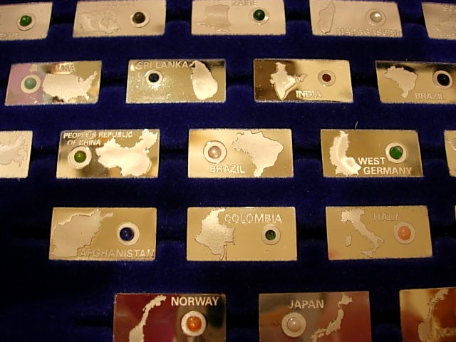 Each ingot represents a country that is a major gem producer, and each ingot is inset with an actual gemstone. This is a mini-ingot set, and should not be confused with Gem Ingot set, which has 30 full size ingots that are also inset with gemstones.