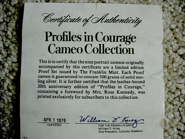 Franklin Mint John F. Kennedy Profiles in Courage Medals