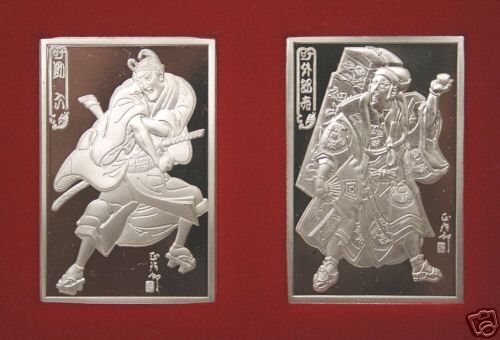These ingots have scenes from the Japanese Kabuki Theatre in Tokyo. Very rare set.