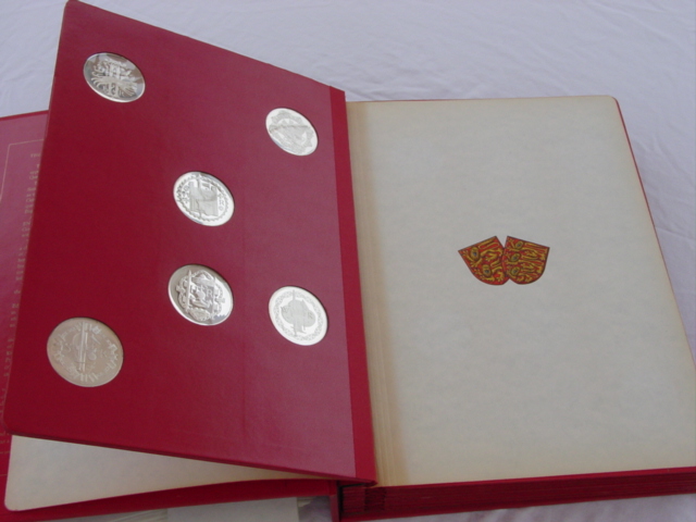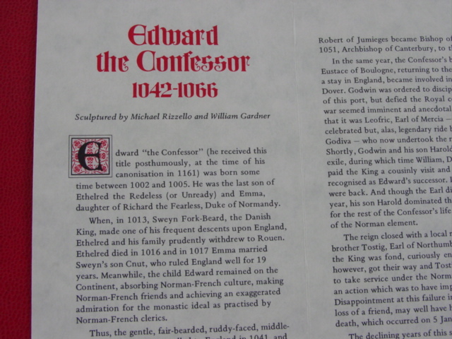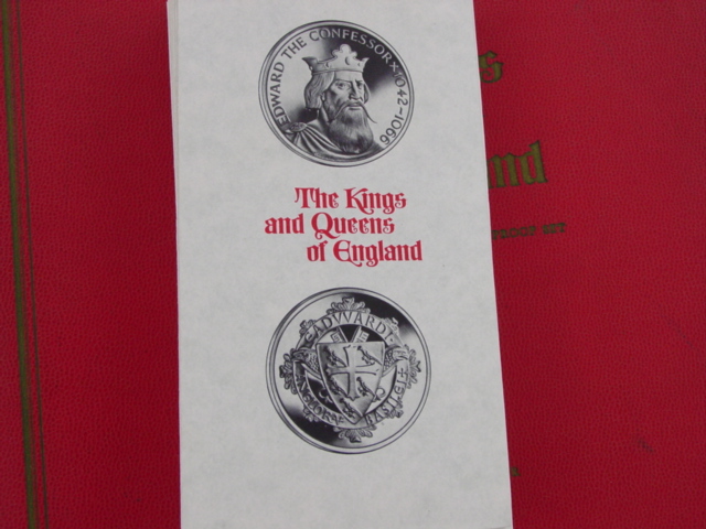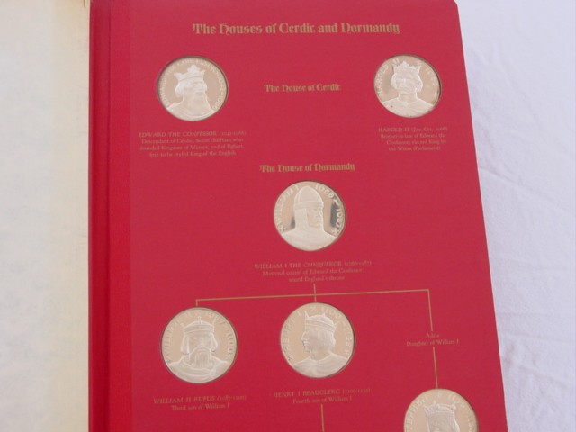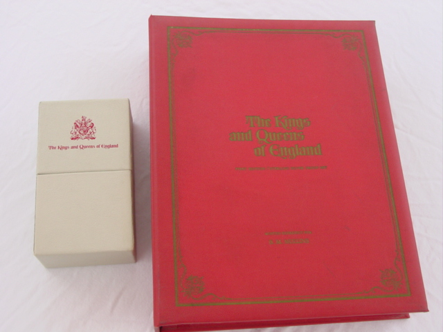 Collection honors all rulers of the British Empire for the last 1000 years. The full-size set comes in an album; the miniature size comes in a wood case with transparent top.