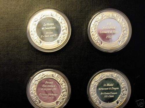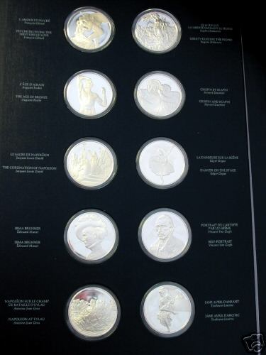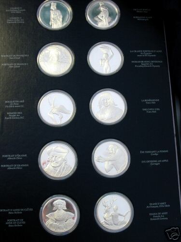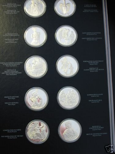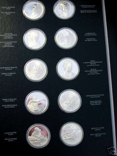 Collection of large art medals shows well-known pieces from the world's best known art museum. A very popular set; it was issued in two sizes and metals including a solid gold version.