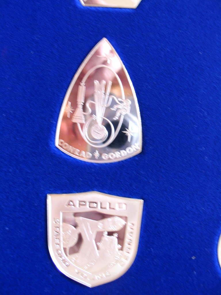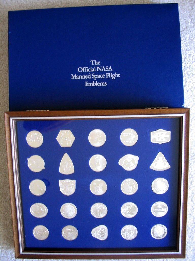 Set of NASA manned space flight insignias, nicely mounted in a picture frame for wall display.