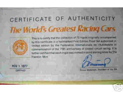 Franklin Mint Racing Cars Ingots