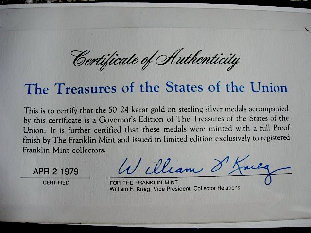 Franklin Mint States of the Union Treasures Medals