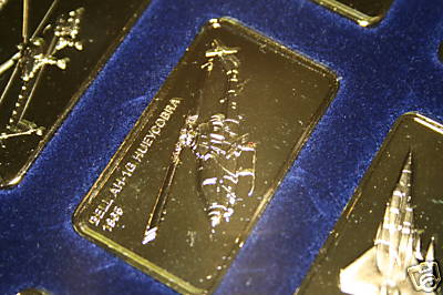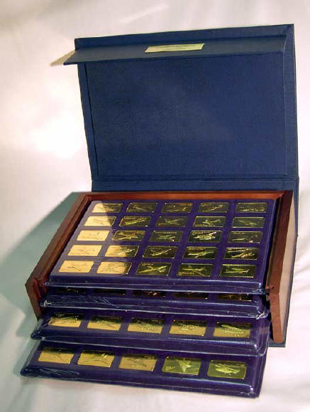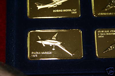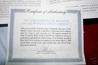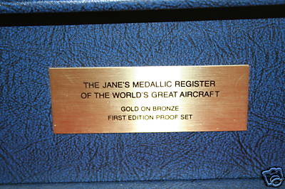 Officially named "The Jane's Medallic Register of the World's Great Aircraft", this is a very nice looking ingot set based on the famous Jane's Register of Military Aircraft. However, the Franklin Mint issued this set only in gold-plated bronze, not in silver. It is included here for reference because it is commonly seen.