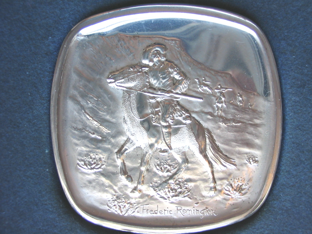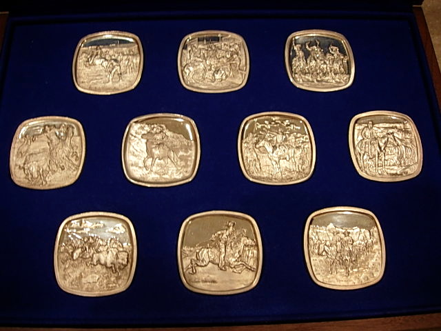 Very unusual set - large high relief ingots in an unusual square-round shape. The ingots show scenes from the Old West by Frederic Remington and Charles Russell, two of the most famous American artists of the west.