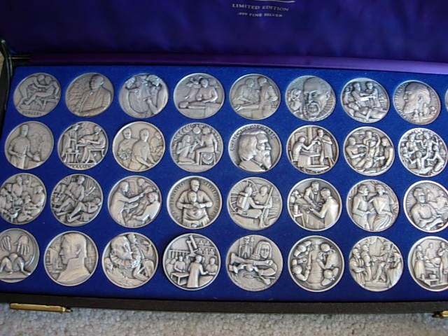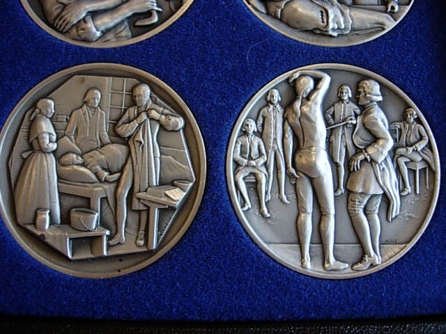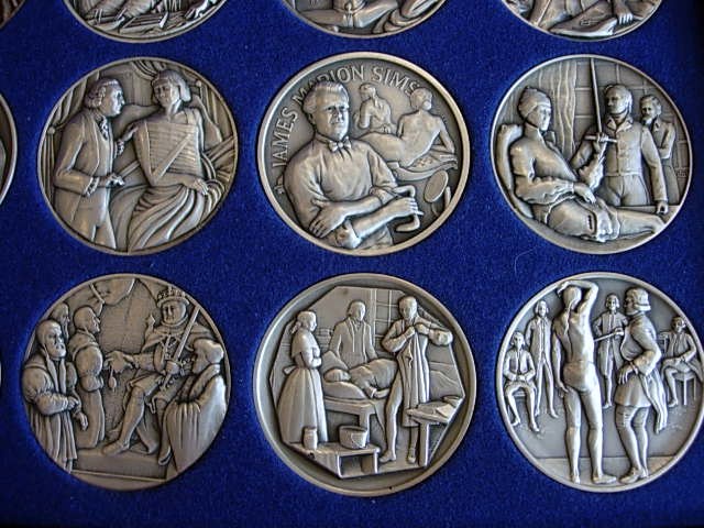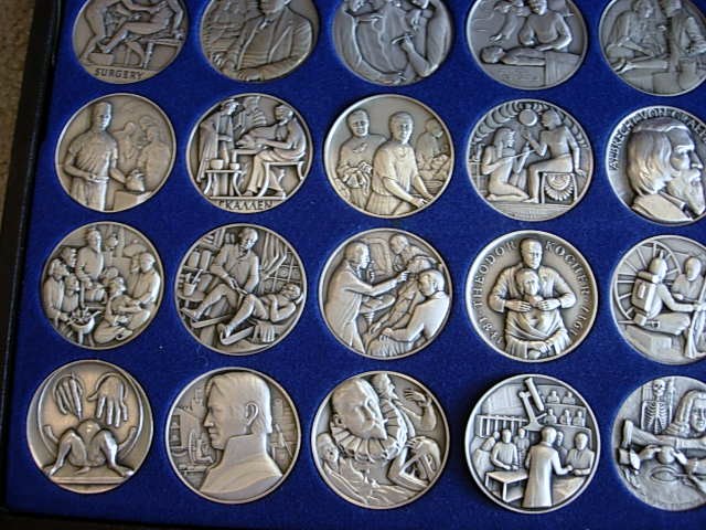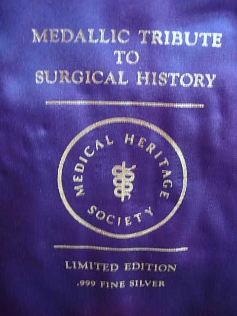 The Medical Heritage Society issued several sets of medals related to medical history. This one is devoted to the history of surgery. The medals are antique finish and extremely high relief.